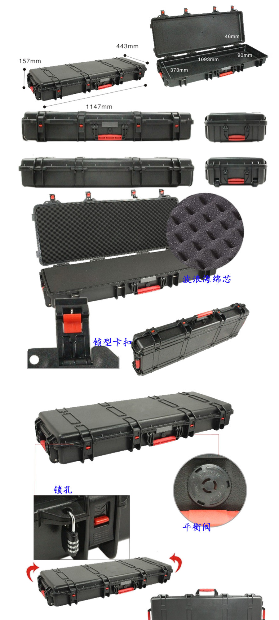簡(jiǎn)要說明:廣泛用于傳媒、公安、消防、軍隊(duì)、航空、戶外攝影、野外考察、科學(xué)探測(cè)等眾多領(lǐng)域的高端儀器、儀表。具有高強(qiáng)度、高抗壓沖擊、防潮、絕對(duì)密封、防塵、防水等特點(diǎn)。產(chǎn)品材質(zhì):ABS原料,箱體采用高抗沖擊的高分子聚合材料一體注塑成型,密封采用扁型彈性發(fā)泡密封橡膠條,確保防水氣密,所有較軸均采用不銹鋼材質(zhì)。