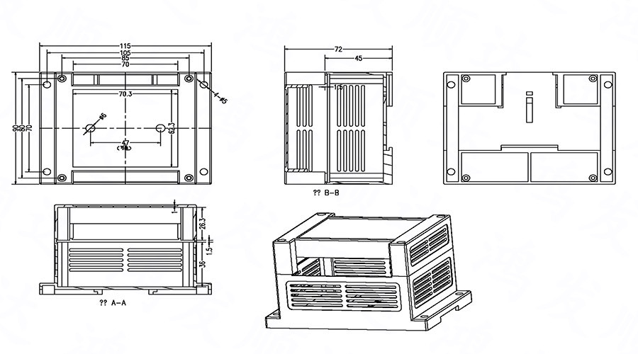 產(chǎn)品用途:廣泛應(yīng)用于電子行業(yè)中各種PLC模塊電路、控制器單元、配電器模塊等 。具有完全絕緣性保護(hù)、散熱性良好等特點(diǎn)。均采用ABS/PC原料生產(chǎn),符合ROHS環(huán)保標(biāo)準(zhǔn)、性能好、耐高溫,不加入任何再生料??筛鶕?jù)客戶要求重新開模具。